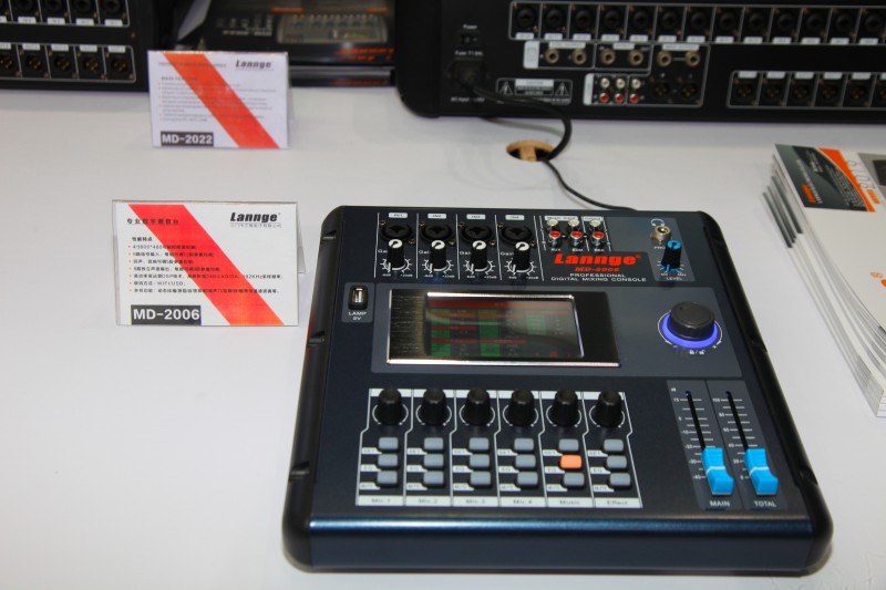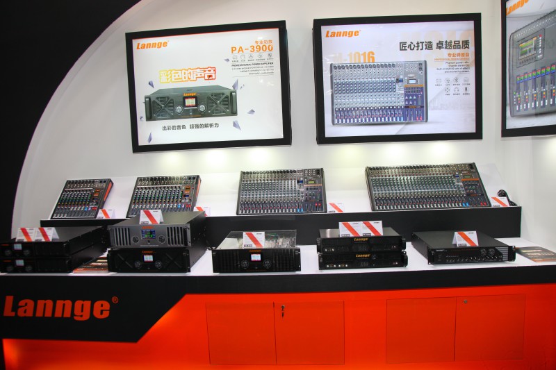 本次展會,Lannge攜帶品牌旗下諸多產(chǎn)品類別登陸于展會,其中包括專業(yè)調音臺,無線麥克風專業(yè)功放,前級效果器,音箱處理器。